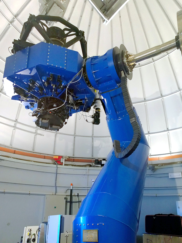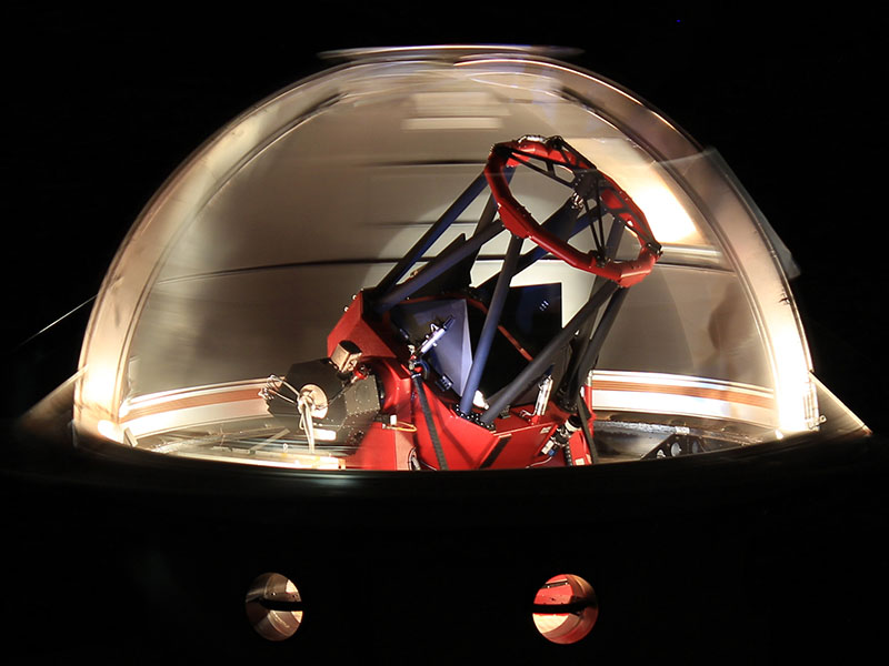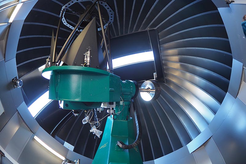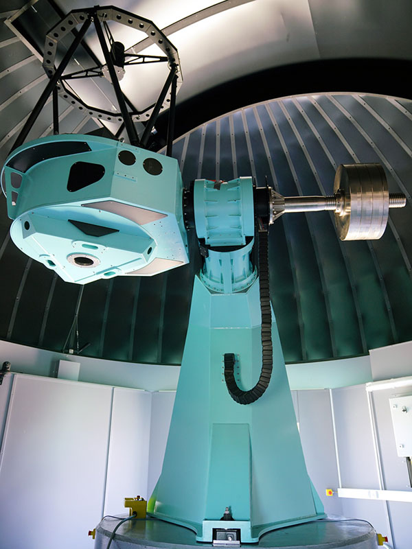 This 1m telescope features a 7-mirror Coudé system with a high-performance spectrograph in a laboratory below the telescope.