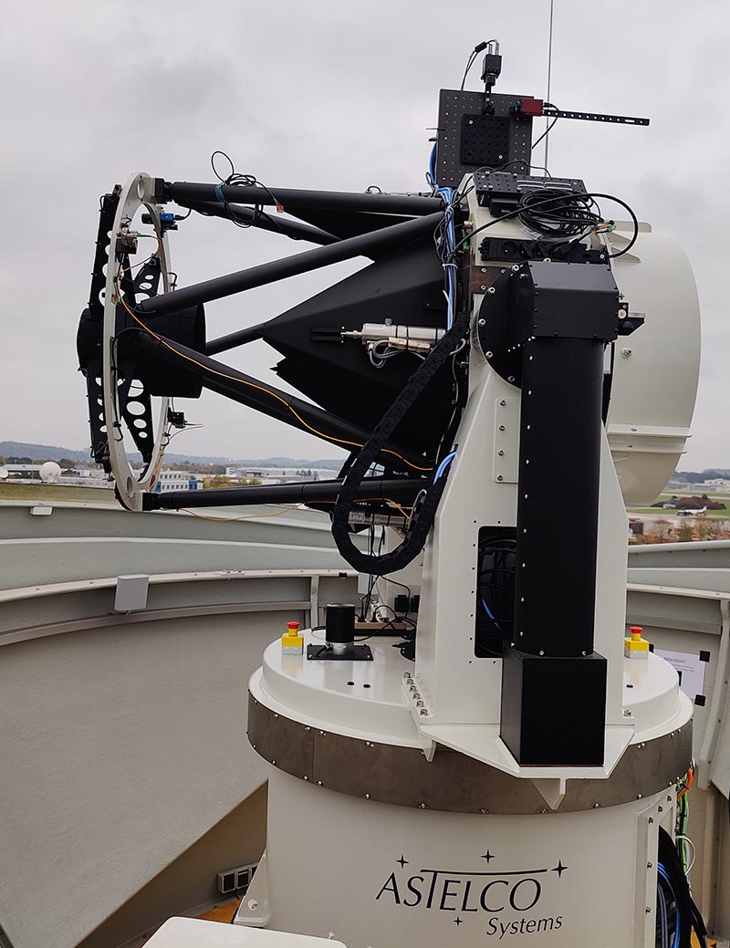 This telescope was built by ASTELCO to test communications between ground-based telescopes and satellites (SAT-COM) with high data rates.